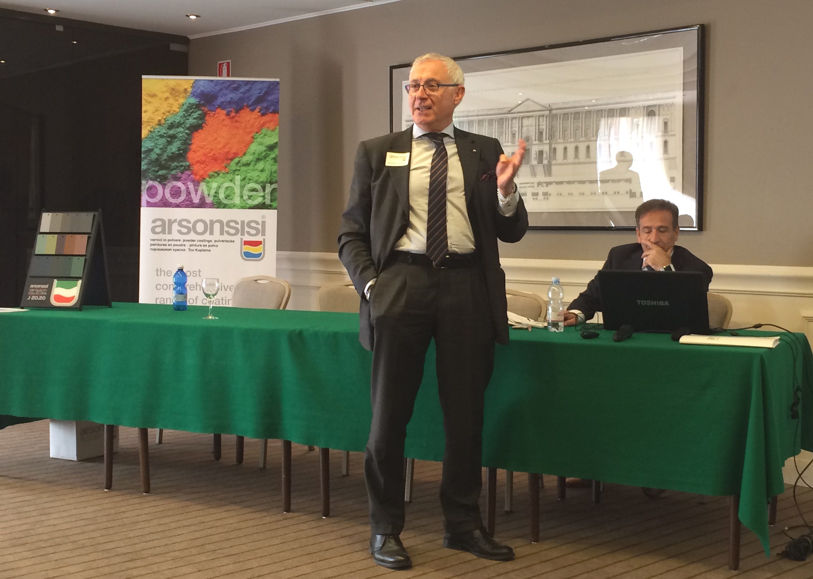 This was followed by various addresses regarding the business areas of powder and liquid coatings: the results for 2016 and for the first quarter of 2017; strategies and goals; successful case histories; new products; improvements in terms of quality and efficiency, safety at work and respect for the environment; references to the economic situation of Italy and Arsonsisi’s credit.