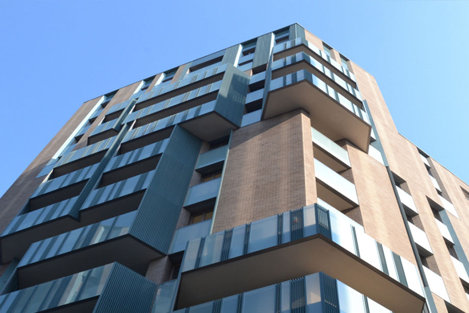 Painting of the parapets characterizing the façades of the noveTREDICI residential development was done by Ossidal S.r.l., a company specialized in surface treatments for architectural and industrial applications of aluminium laminates and extrusions.